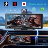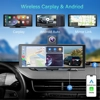 - 【360°Rotatable Front Lens】The front camera of carplay screen for car is upgraded with 360°rotatable design, which can record inside/front/both sides of the car and capture multiple blind spots that drivers can't see, making it more convenient to observe kids in the car or record the car situation, avoiding driving distraction! Newest wireless carplay bracket, perfectly fits the size of the car play screen, more stable, don't worry about the risk of the apple carplay shaking or falling off during driving!